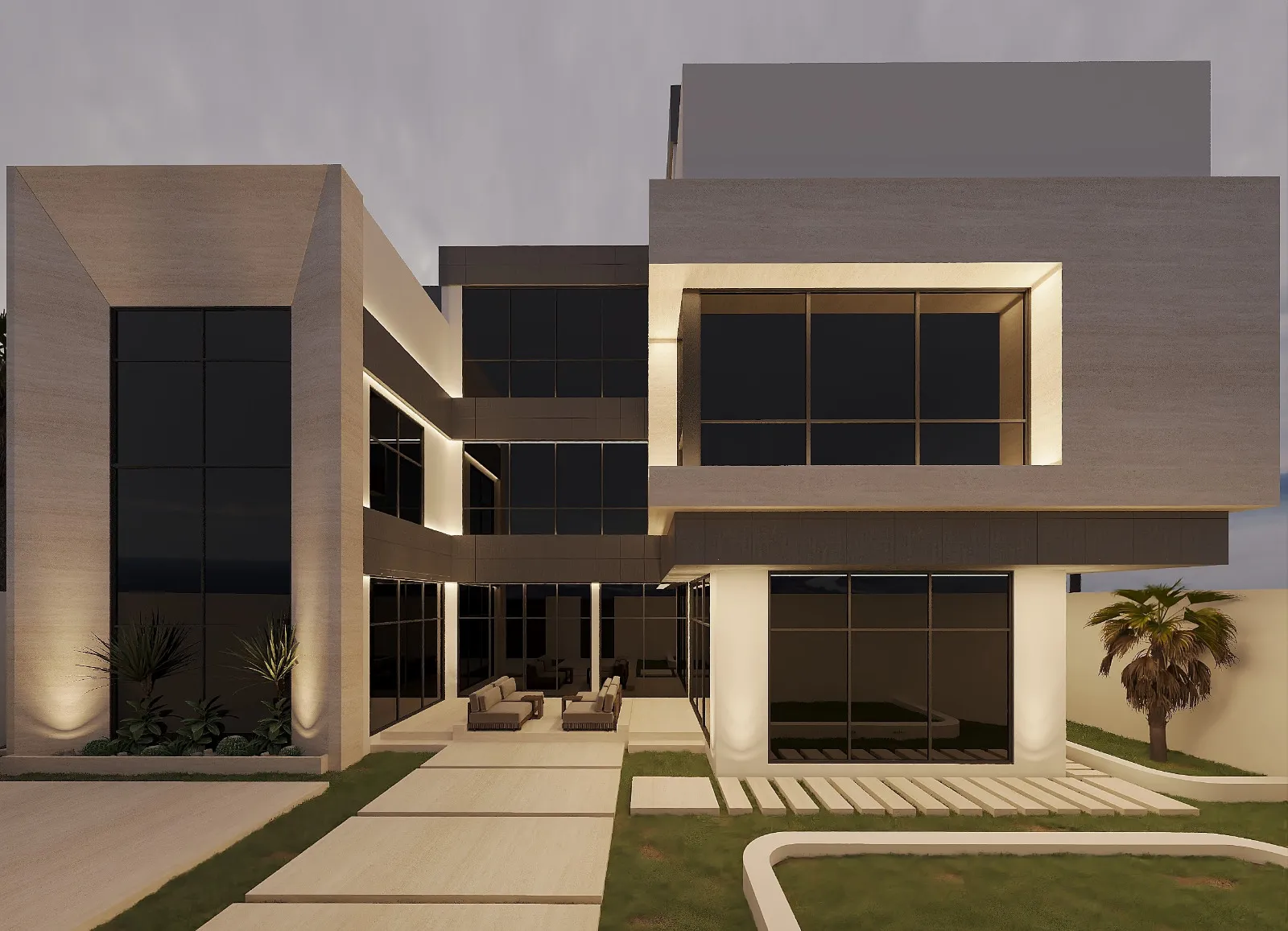 - تتضمن أشكالًا مبتكرة وزوايا هندسية مع استخدام الزجاج الكبير، مما يوفر إطلالات رائعة ويعزز من الإضاءة الطبيعية.