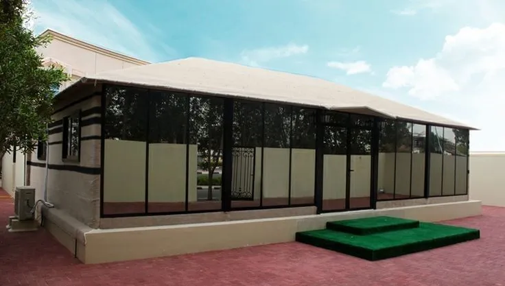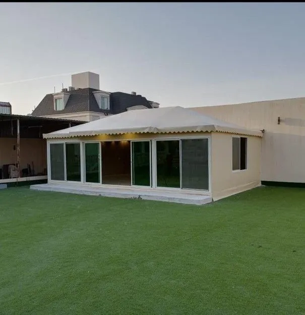 تصميم مرن وجذاب: يتم الدمج بين الزجاج والمواد الطبيعية كالأخشاب والأقمشة الفاخرة لتشكيل بيت شعر واجهه قزاز أنيق يلائم الذوق العربي والخليجي.